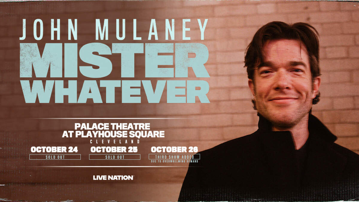 Three-time Emmy winner, John Mulaney brings his Mister Whatever Tour to Playhouse Square – Palace Theatre for 3 nights, October 24th, 25th and 6th! Enjoy this evening in Downtown Cleveland as he brings his sharp wit and signature storytelling to the stage for an unforgettable night of comedy. For complete show details and to purchase your tickets, click HERE